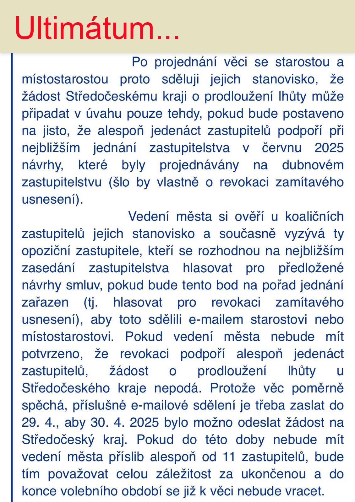 Ti, kdo dnes rozhodují, by měli mít na paměti, že jejich odpovědnost nekončí na hranici jejich vlastního mandátu. To, co se odhlasuje dnes, ovlivní Nymburk a jeho obyvatele na dlouho dopředu.